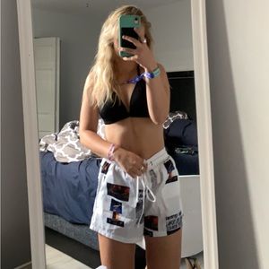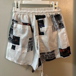 White graphic shorts - slightly see through since they dont have a liner