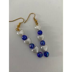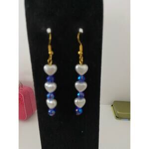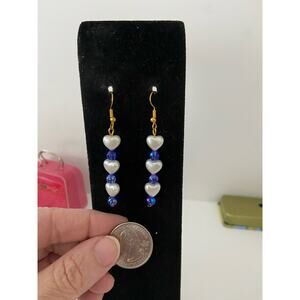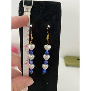 Handmade faux pearl heart earrings either iridescent blue besad spacers new great for school going out parties work holidays vacation gifting skater grunge goth hippie boho retro rave casual twee cottage coastal grandmother art deco bohemian softgirl light academia ecofashion Jewish pride Israel