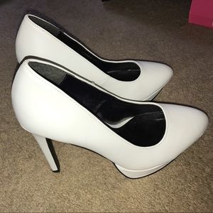 White high heels. Worn a couple times. They do have scuffs, you can not see them when wearing but when they are off they're noticeable. Comfortable. Feel free to offer :)