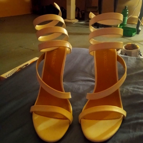 white high heels with snakes going up the heel.brand new never worn