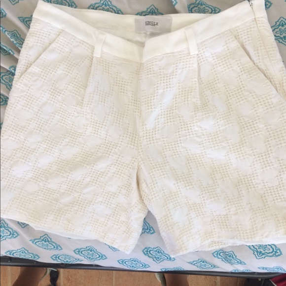 Made in Italy, high waisted white shorts with lace-like pattern. Pringle of Scotland is the brand. Not American so I do not know the exact price, but their items online are a ridiculous expensive price. Never worn. Zipper on the side. Size 2, but because they are European more like a 0!