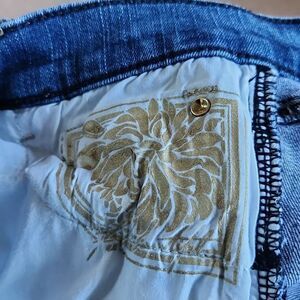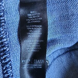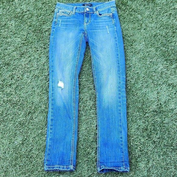 Nice pair of White house Black market blue denim jeans. Size 00R. Pockets are embllished with beads. Straight leg skinny jeans. Distressed. Very good used condition