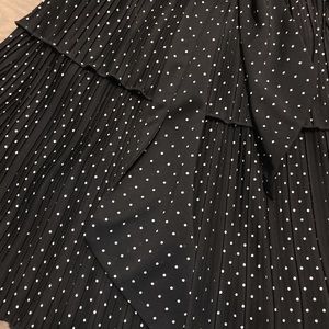 Black swings dress with small white polka dots. Van be worn on or off the shoulder. Super comfortable and stretchy fabric. Fully lined. Used a handful of times in perfect condition. Belt is removable.
