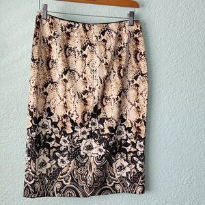White house black market snake floral print midi fully lined skirt