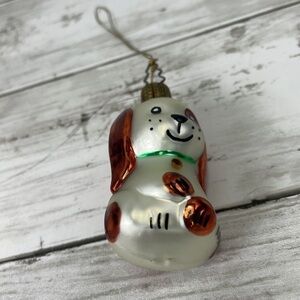 White hurst vintage PUPPY GLASS CHRISTMAS ORNAMENT