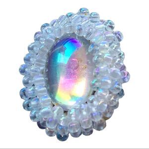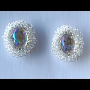 White iridescent hand beaded pierced earrings fabulous colors and artist design