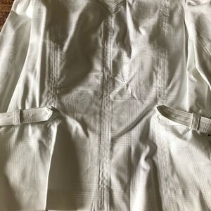 White light weight jacket new with tags! Buckled in the back to tighten the waist!