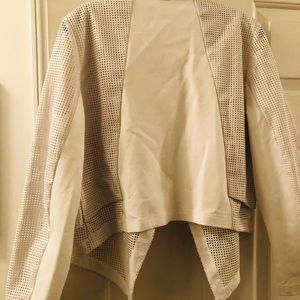 White open front double flap laser cut detailed jacket. Chico’s size 2.