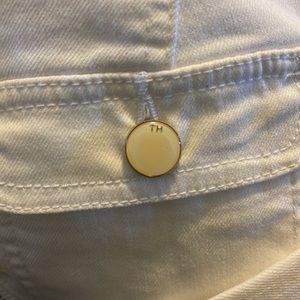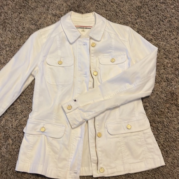 Tommy Hilfiger white jacket with gold zipper. Very flattering shape. Worn only twice, like new. Nice button detail. All four pockets on the front are functional.