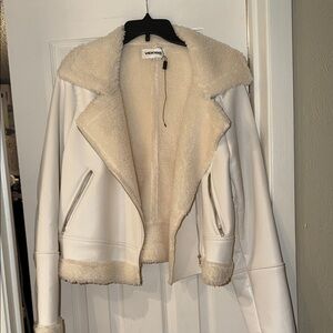 Stay warm and stylish with the White Shearling Jacket. This chic jacket features a cozy shearling lining, perfect for cooler days.