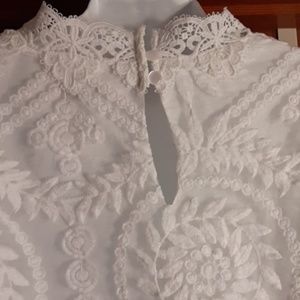 White lace blouse with feminine puff sleeves
