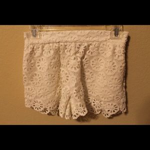 White lace flower scalloped shorts with an elastic waist band. Never worn. Great condition.