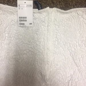 White mini skirt wth lace overlay. Zipper in back