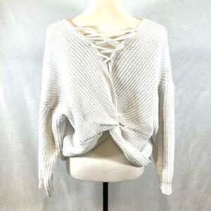 White lace up twist back sweater size large