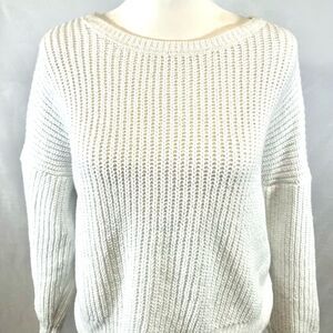 This simple white knit sweater has added style with a lace and twist back. Euc