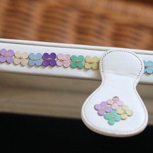 Adorable white handbag. Structured box like style, with pastel applique details. Mirror inside. 1950's, one owner, vintage style and in good condition.