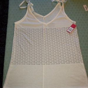 White lightweight Sleep Shirt. RN 544530. White with ties at the shoulder. This is a size Medium. Chest 17" inches Length 24 1/2" inches. Written words of Future written across the shirt.
