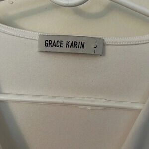 White long sleeve blouse long sleeved, criss cross vneck, ruching on the sides size large 😍