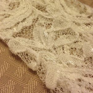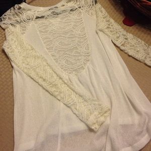White long sleeve shirt with lace sleeves and a lace "U" cut out in the back. Lightly warn, but has no signs of wear. Perfect for a chic fall outfit. Make offers!