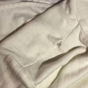 Except for the small hole pictured above, the rest of the shirt in is good condition. No other flaws. Only worn once. Stretchy and very comfortable material.