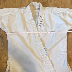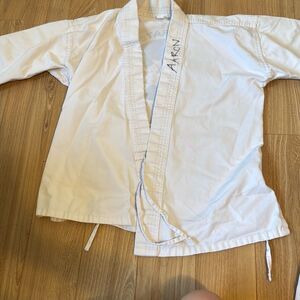 White martial arts uniform Size small Has aaron written on it but being sold a