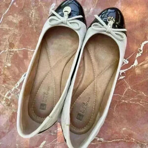 Gorgeous and classy white mountain flats. These are so comfortable with padded soles. They are so classic looking with a gold accent size 7 flats