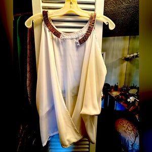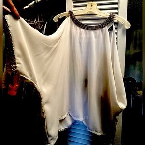 White open back gold Grecian neckline top. Buttons back of neck.