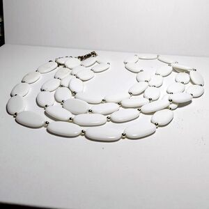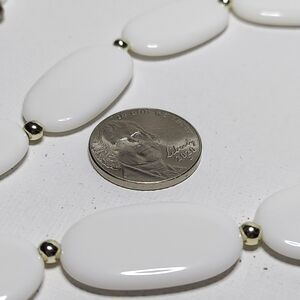 White oval beads with silvertone spacers 60 inches