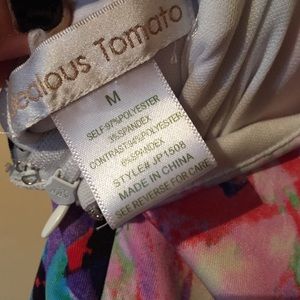Has skinny black straps & Cinches at the waist. Has pockets in the front and fake pockets in the back for show