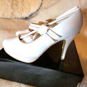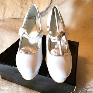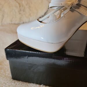 White patten Mary Jane's, with light pink platforms size 5/6
