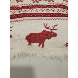 White pine Christmas Throw Pillow Red White Reindeer Elk Faux Fur Trim in good condition.