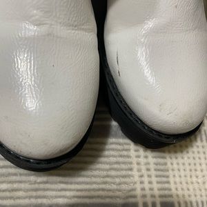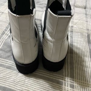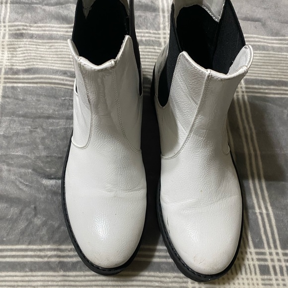 White platform booties! They have a nice contrast with the black chunky sole. Cute with any outfit! They do have some scuffs I will work on upon purchase. Make an offer!