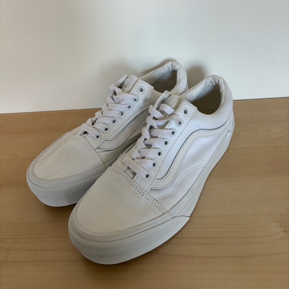 Lightly worn white platform vans. In almost new condition