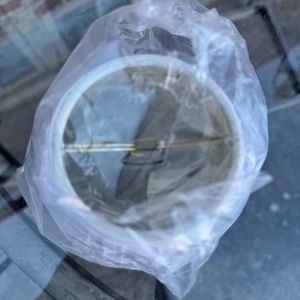 White pleated mini lampshade with brass hardware; 4” tall, bottom 5” wide, top 3” diameter. Like new