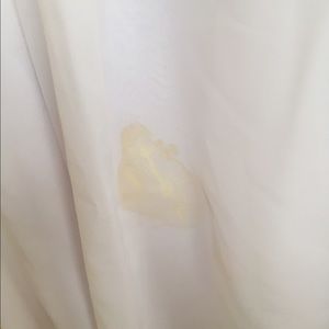 Worn once, few stains as pictured in the photos that should come out easily, but I have never tried to rinse it since I wore it!