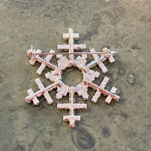 White rhinestones brooch festive Christmas holiday silver snowflake motif pin
