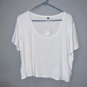 From It’s Fashion plus size sportswear -white ribbed short sleeve crop top