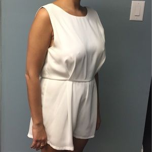 White romper with an open black lace back. Size medium. Worn once for a few hours.