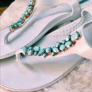 BEAUTIFUL White sandals detailed with blue and gold stones. ONLY WORN ONCE!!