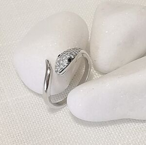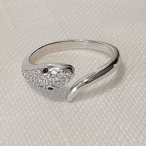 Sterling silver snake ring with genuine white sapphire and black spinel eyes.