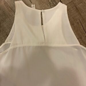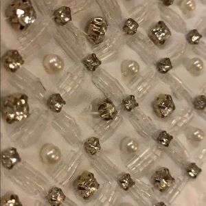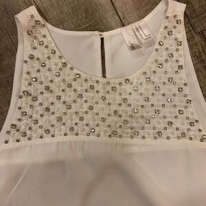 White sheer blouse with beautiful beading, pearls and diamond work with a button clasp at the neck.