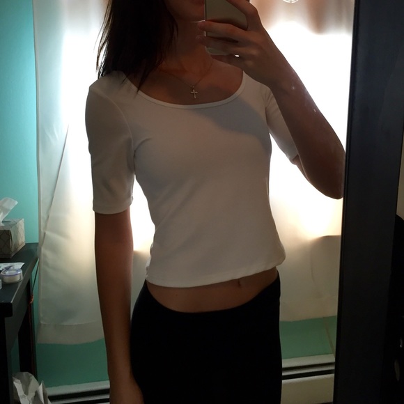 🔸 short cut 🔸 white 🔸 super stretchy 🔸 half sleeve 🔸 never been worn 🔸