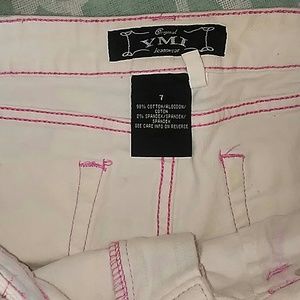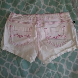 White short shorts with pink stitching. Size 7. Frayed folds. Just in time for warm weather!