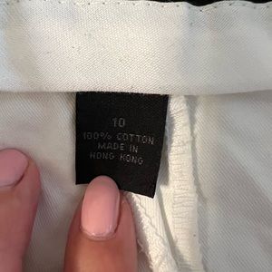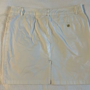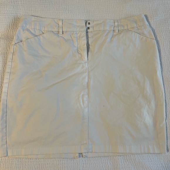 Gently used white skirt from express. Hits just above the knee. Can be dressed up or down. There are some flaws in this skirt as shown in pictures - a small blue pen dot on the front of the skirt and a small tear near the seam directly in the back.