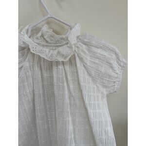 Unfortunately, I can't recall the brand on this dress and the interior tags have been removed. Maybe you know from the front facing tag!? EUC with no flaws aside from missing tags. Fit us as a 6-12 month fit.