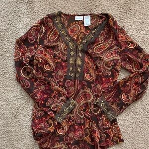 White Stag sheer long sleeved blouse size large. Preowned great condition, 100% polyester. 22 in pit to pit, 29 in top to bottom. Ships in 1-2 days🌈