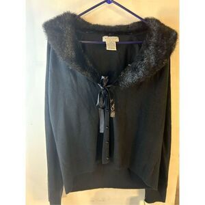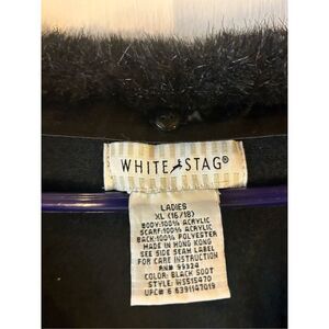 White stag black fur trim sweater xl. measures 24" chest, 22" long. 100 acrylic. good used condition.
