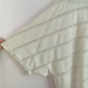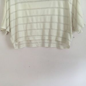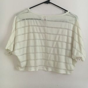 This short sleeved, white crop top is perfect for the summer months. The stripes are an even thinner material than the rest of the shirt, allowing any colored tank underneath to show through. The hem falls about belly button length on a 5'7 frame. Price is negotiable.