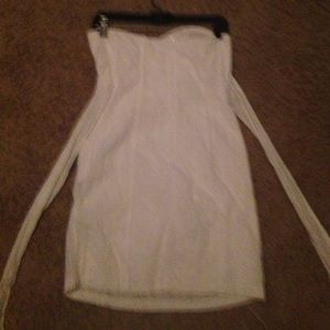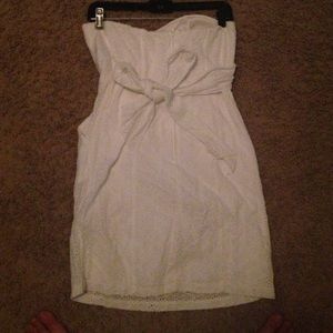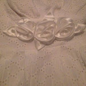 Super cute white summery dress with flowers in front and fabric in the back to tie! Has a zipper down the back and detailing all over. Size 11. Has pockets too!