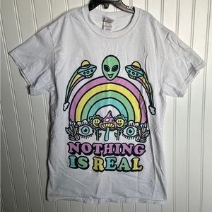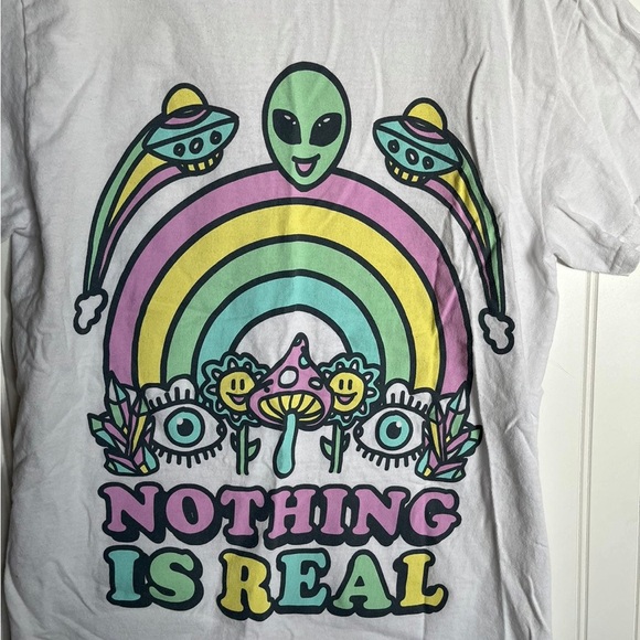 Nothing is real with pastel rainbow and alien and mushrooms and eyes and psychedelic vibes